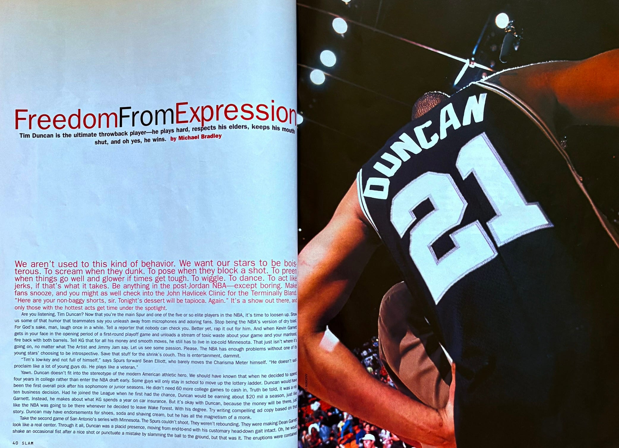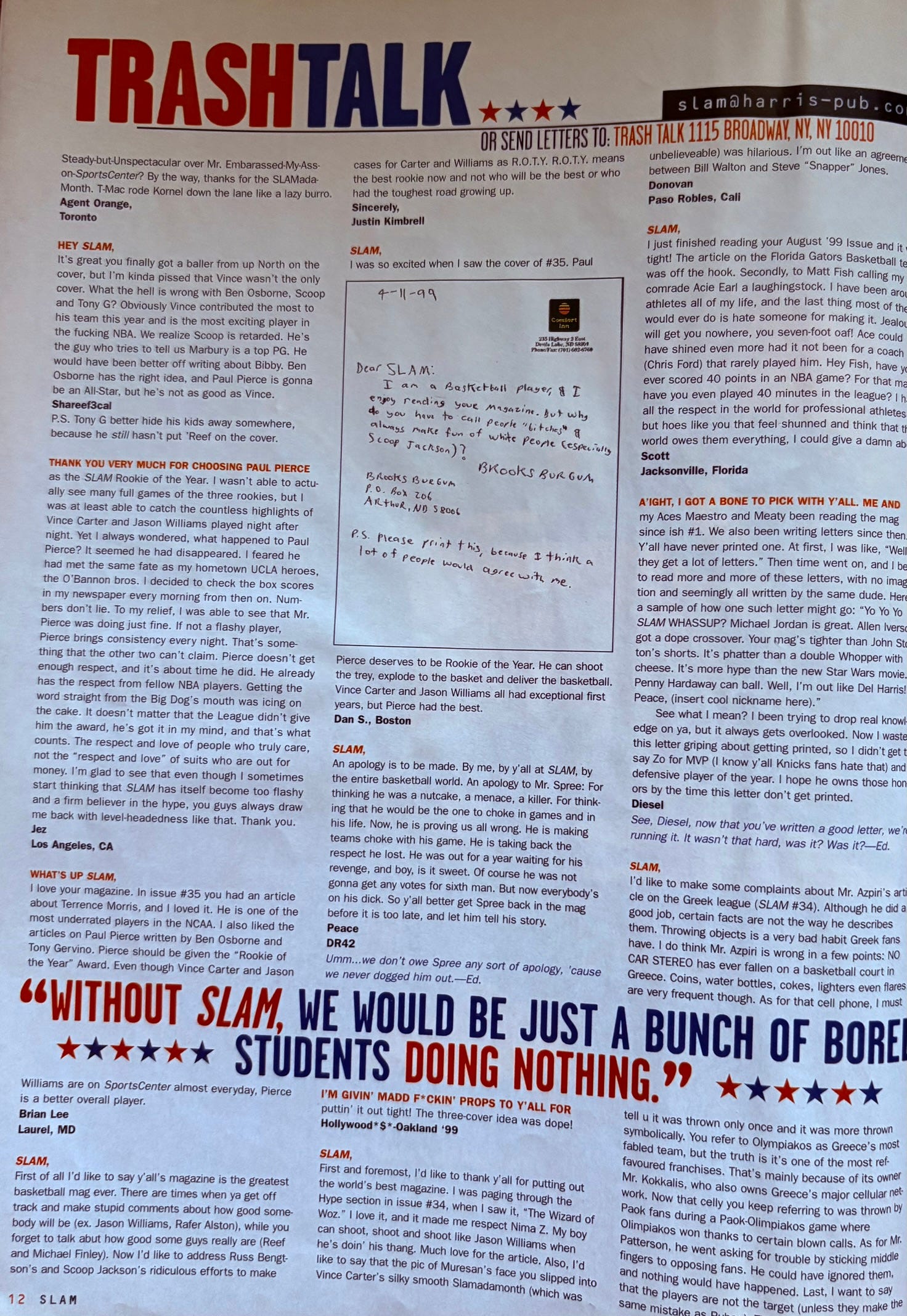 Also, re: ads, I know I’ve written that I try to avoid repeating ads from older issues that I’ve already published, but I realized it’s not easy going back each week and double-checking that I did or did not post an old And 1 ad or whatever. To that end, to accommodate new readers and my mental well-being, I’m going to stop doing that. There’s a lot of great ads in these magazines so an occasional repeat feels like something I shouldn’t fret over (I’m not sure anyone notices, tbh).